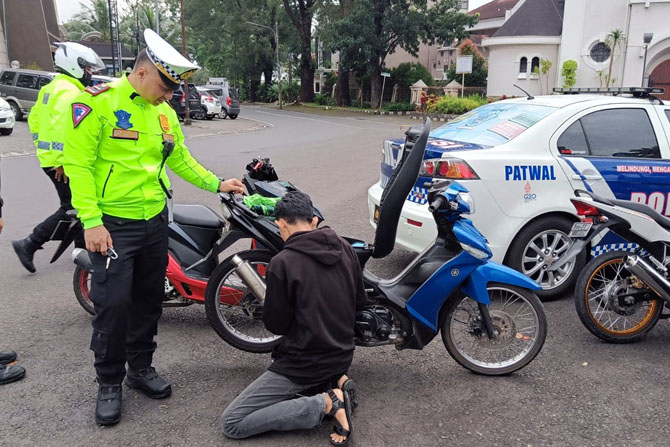 Polisi Resort Kota (Polresta) Malang Kota kembali menggelar razia knalpot brong. Kali ini sasarannya adalah kendaraan yang melintas di Jalan Besar Ijen, Klojen.